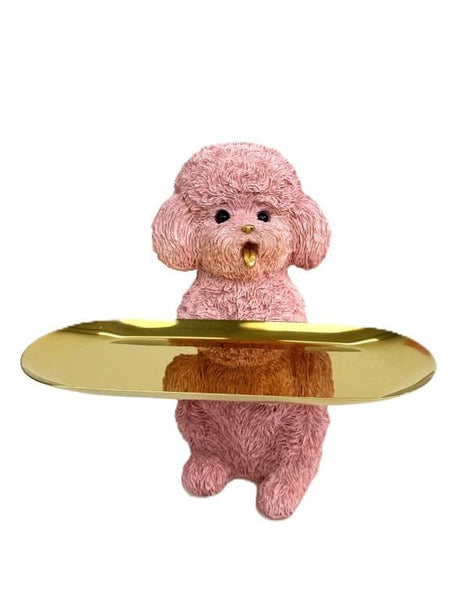 The Little Gift Shop Wickford Pink Poodle Dog Holding Gold Tray Lovely Pink with gold details Poodle Holding Metal Tray 21cm W x 23.5cm H x 22.5cm D £27.00