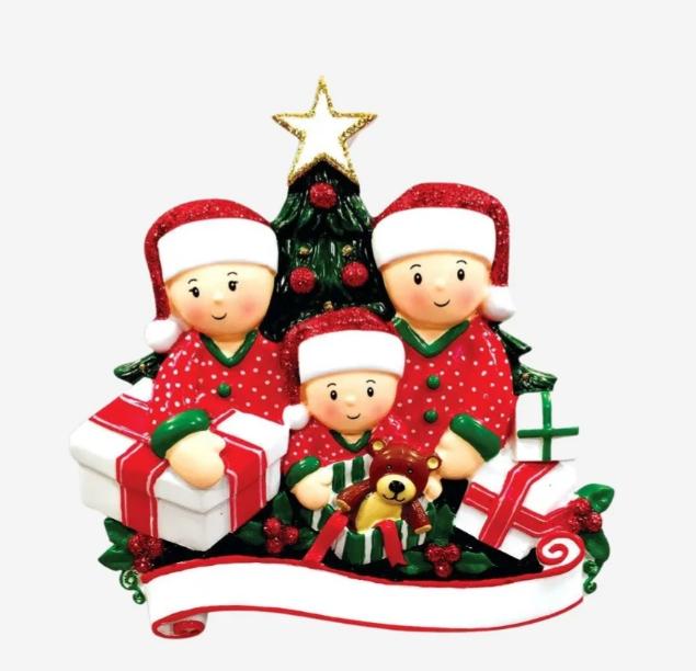 Opening Presents (family of 3) Christmas Ornament Personalized