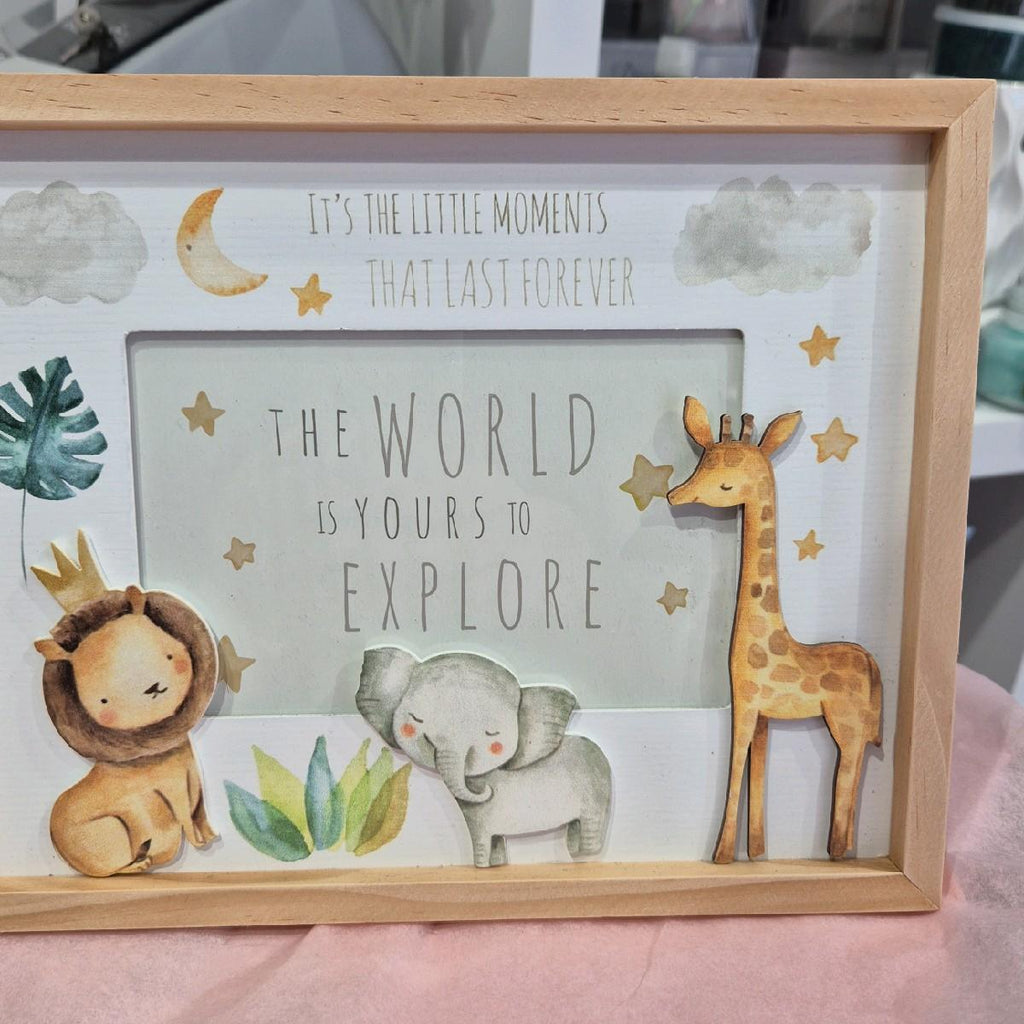 Looking for a gift that's both adorable and practical? Look no further than our Cute Animal Photo Frame Gift! This charming photo frame is designed to hold a 4 x 6 photo and comes with an eye-catching pine-colored frame, featuring cute depictions of a lion, elephant, and giraffe.This photo frame is perfect for displaying your favourite memories in style. Whether you're looking to decorate your home or office or looking for a gift idea that's sure to delight someone special in your life, our Cute Animal Photo Frame Gift is an excellent choice.So why wait? Add this delightful product to your shopping cart today and take the first step toward creating cherished memories that will last a lifetime!