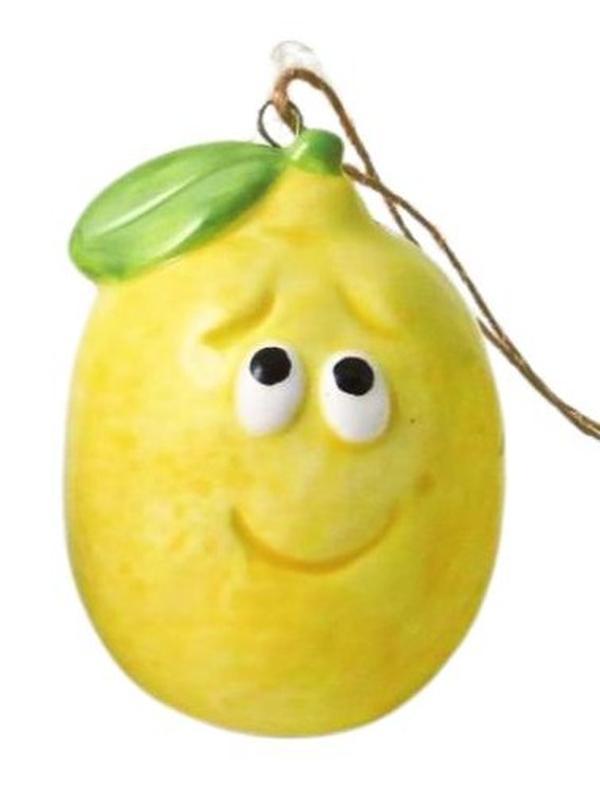 Ceramic smiley faced lemon tree decoration with string to hang Size: 5.7cm Hanging Ornaments