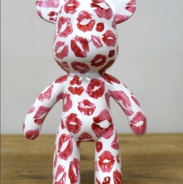 * Details: With its simple yet captivating look, this bear brings a touch of whimsy. Its red kisses add a playful element to any setting. Ideal for those who appreciate unique, resin-made decor items.