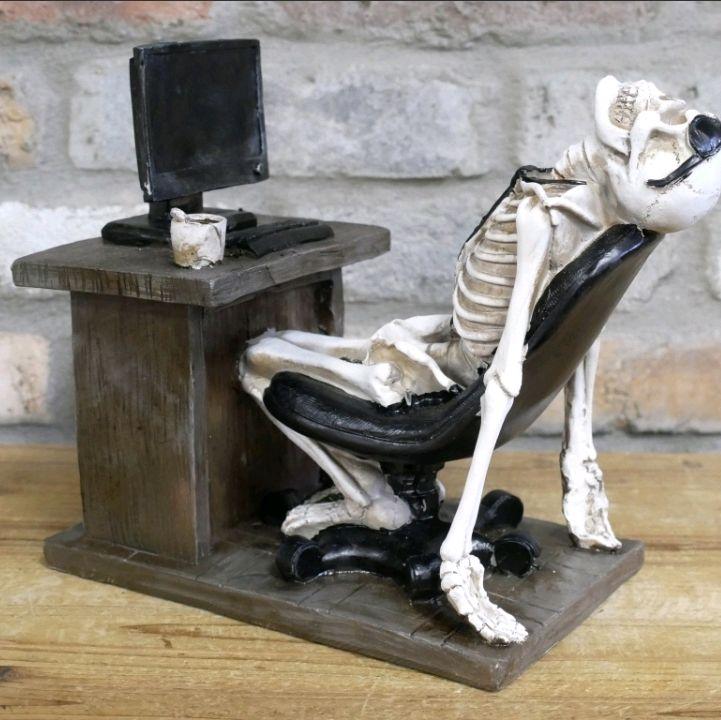 Worked to Death Desk Ornament \- A unique figurine of a skeleton sitting at